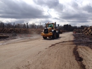 At the sawmill. Sorting out logs in the yard.