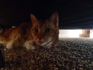 My grandmother’s cat, hiding in her new apartment. (I was tasked with trying to get a good picture. Easier said than done, especially due to the fact I only had my cell phone with me…)