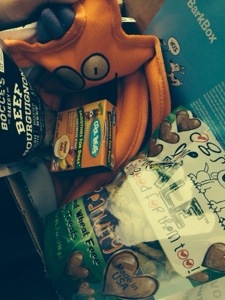 Roxie and Bronco have been subscribed to Bark Box and they received a new box last week – Bronco loved the new toy and Roxie has enjoyed the little beef treats.