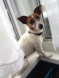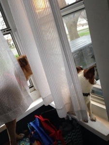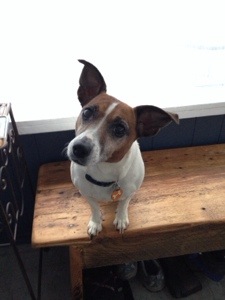 Another nice day, means the front porch is open for business… Roxie sitting on the bench getting ready to survey the passerby’s.