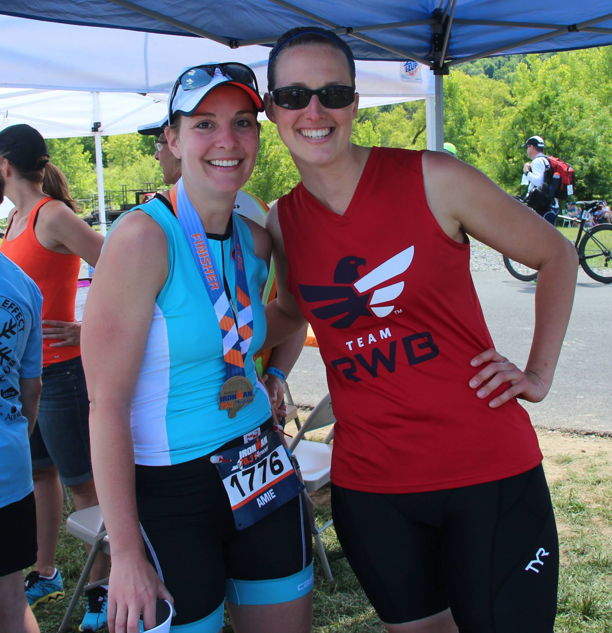 Finish line with Kristin – she rocked her first ever 70.3 with a 6:07!!