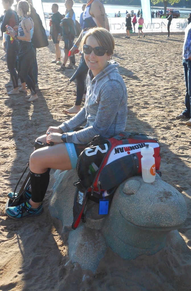 Hang out and wait for race start, and subsequently wait for my swim wave start (1 hour, 5 minutes after actual start of race…).