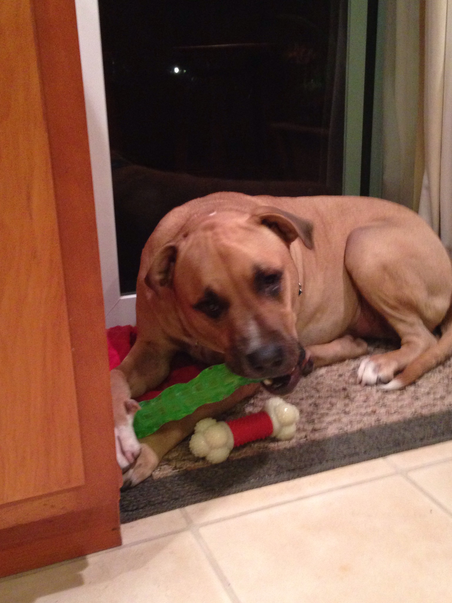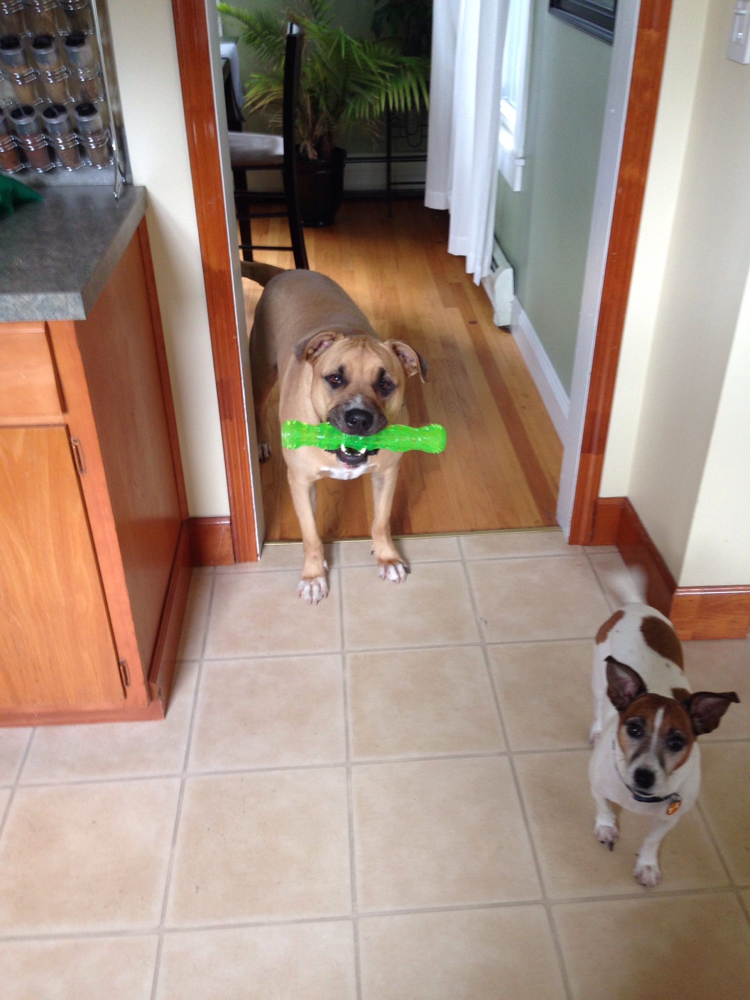 He kills me. “Guarding” (or maybe just sleeping with) the toy so Roxie can’t have it…