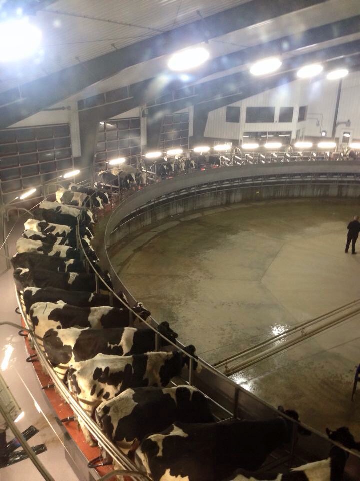 This past week, I had my LEAD NY Class in Syracuse Thursday-Saturday. On Friday afternoon we visited a few farms, including this one with a 100 cow rotary parlor! It was fun to watch how excited the cows were to jump onto the “carousel” and how relaxed they were as they took their ride around!