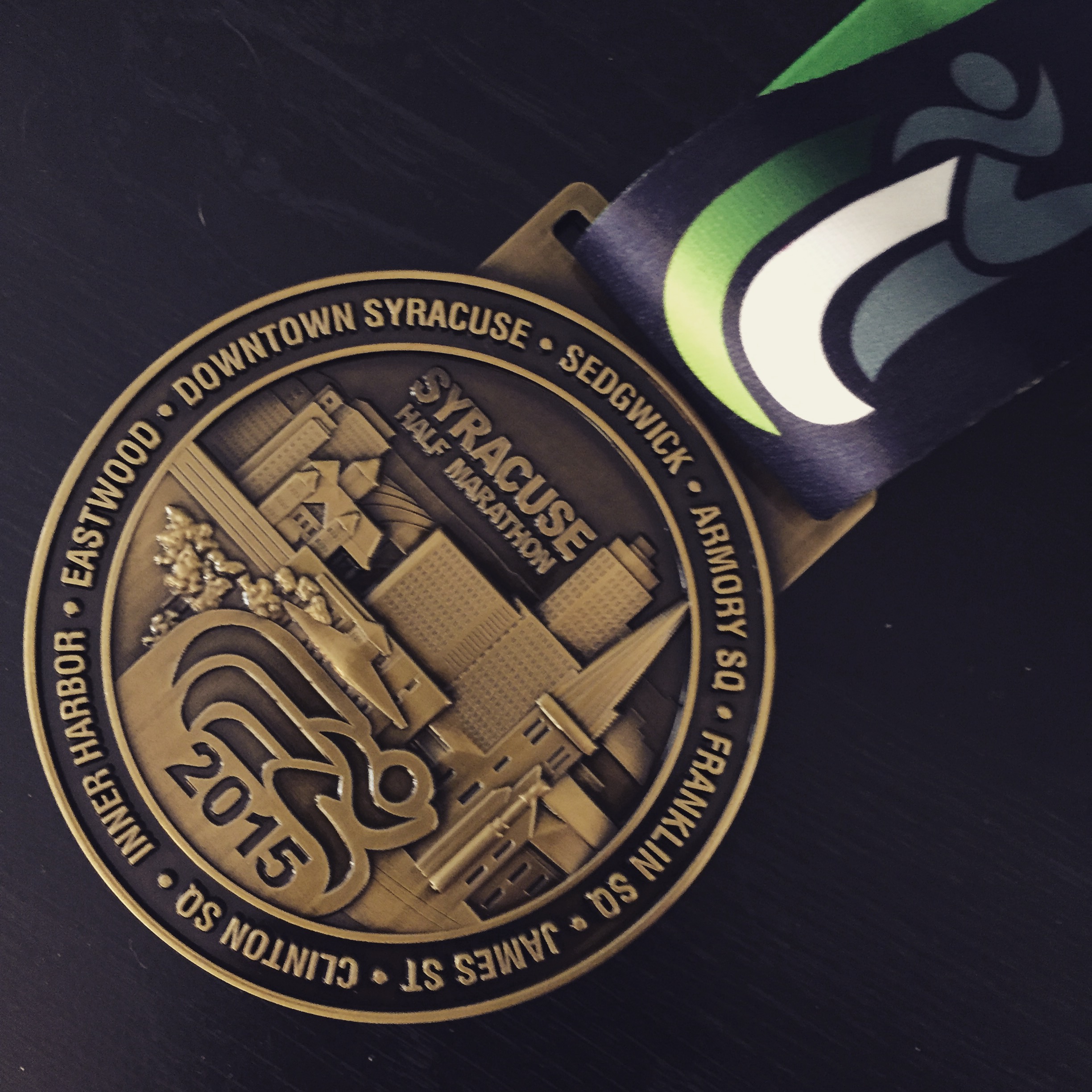 Sunday – Syracuse Half Marathon (aka my “catered training run”) <– Not my best 13.1 but not my worst AND first time over 10 miles since my injury last Fall – made it through without aggravating my injury & my calf is holding up (whoop whoop, hopeful that I can continue building and stay injury free!!)