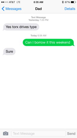 The fact that this was the first text message I ever received from my Dad is just perfect. 🙂