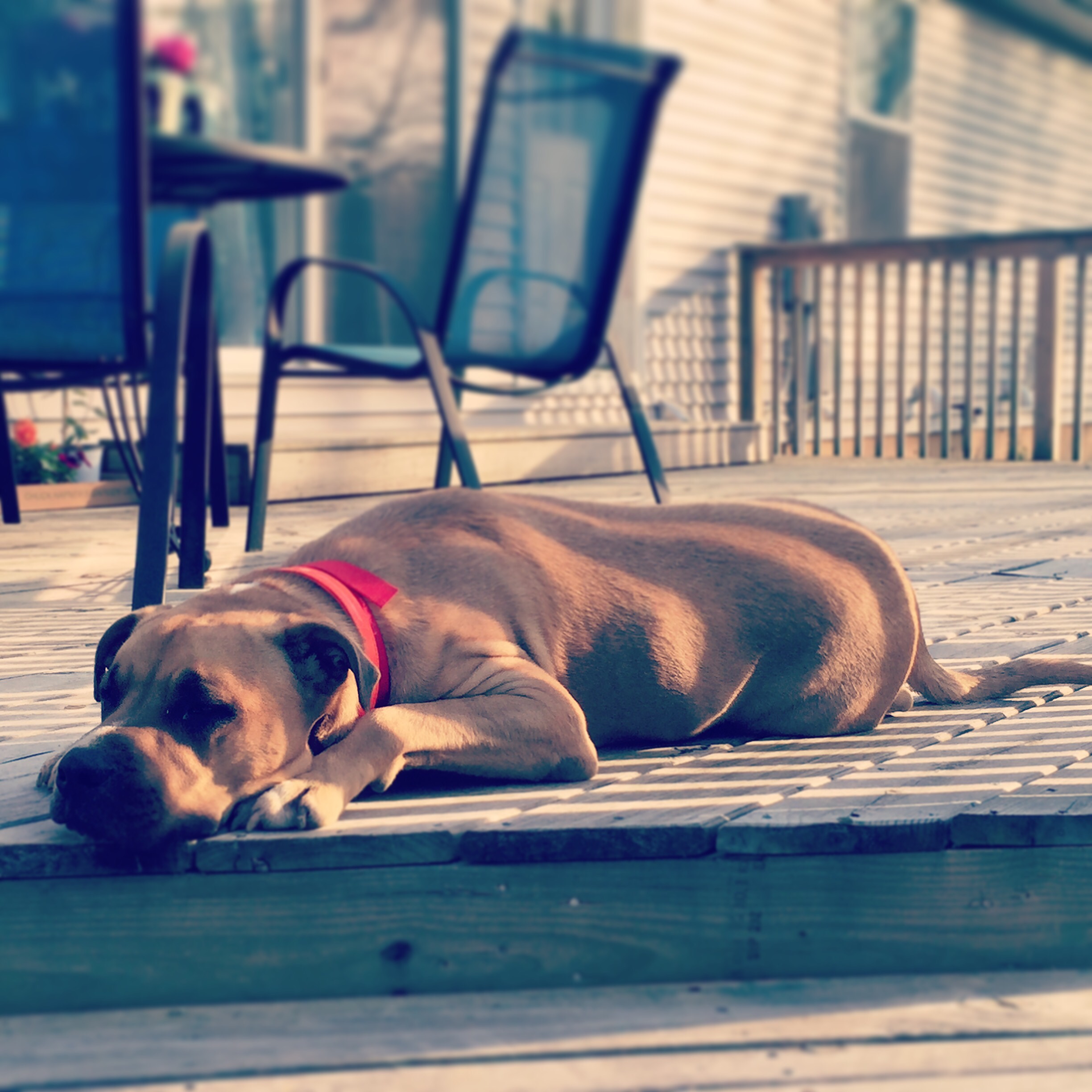 Bronco was cracking me up this weekend. With the heat, he just kept flopping down everywhere and anywhere.