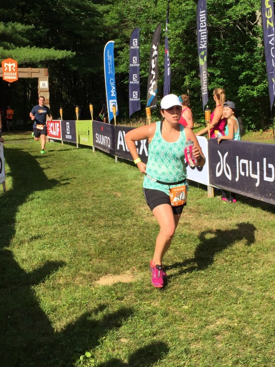Ok, enough randomness about the camping portion. Let’s talk about the running. Oh the running. I started with the red loop (hardest loop), followed by the yellow loop (moderate) at night, and the green loop the next morning. I honestly really loved all three loops. We had about 2800 feet of elevation over the course of 14.8 miles. So really we were like little mountain goats for part of this relay. Each loop started UP the same path and then split off – with the red and yellow loops headed up the mountain first thing the looping back down. I had zero expectations going into the relay, and 1 focus for the relay. TO. HAVE. FUN. No worries about paces, speed, time, etc. The goal was to complete the relay, uninjured (no twisted ankles, no stubbed/broken toes on roots, rocks, etc.) and to relax a bit out in the woods. This was my break from Ironman training and a much needed break before finishing out my training for Lake Placid. At the close of this weekend, I can say I accomplished my goals.