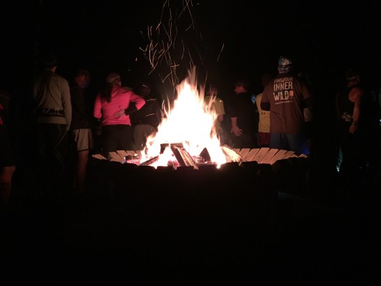 The yellow loop was my night time run. I knew it went straight up and then back down the mountain. At 4.8 miles, it was a similar experience to the red for the first 3.2 miles of being out in the woods and the grassy trails, a few more people were around since all the teams were out running at this point, but largely you had to just focus on the trail in front of you, focusing on each step. It was so dark and the headlamp really didn’t provide enough light alone. I was very happy for the handheld bike headlamp that KK had brought for us all to us. It really was a lifesaver, even if it was a bit of a pain to carry it. With that loop done, a few of us ended up grabbing beers and heading to the campfire for a while to hang out and chat. I swear, I could do this every weekend. With or without Ragnar. I just need a few friends that want to camp and run. 🙂
